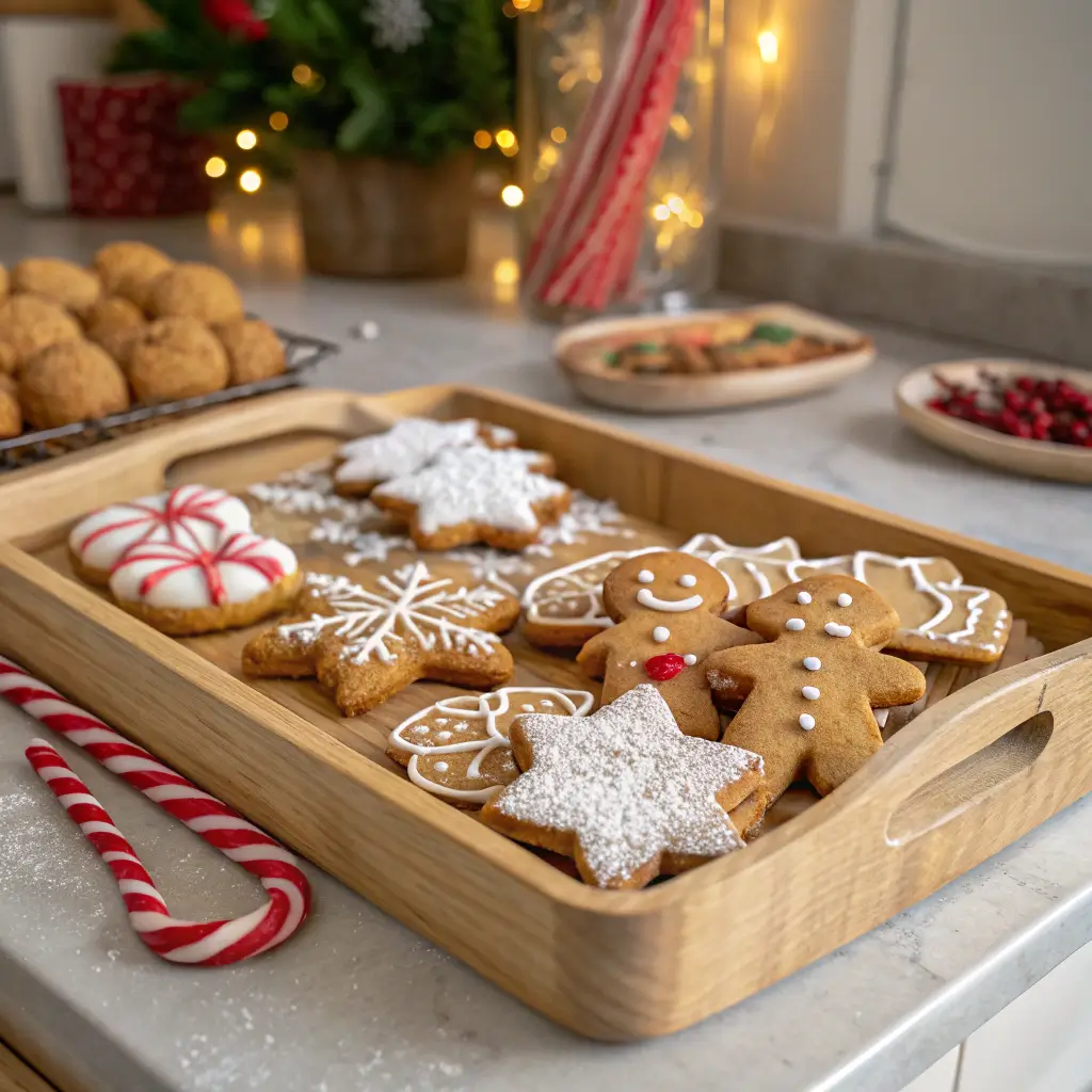 Use a tiered stand (wooden or metal works great) decorated with ribbon and small ornaments. Line each level with festive doilies or parchment cut into snowflake shapes. Arrange cookies by color and size, creating visual harmony that makes people want to grab one… or three.