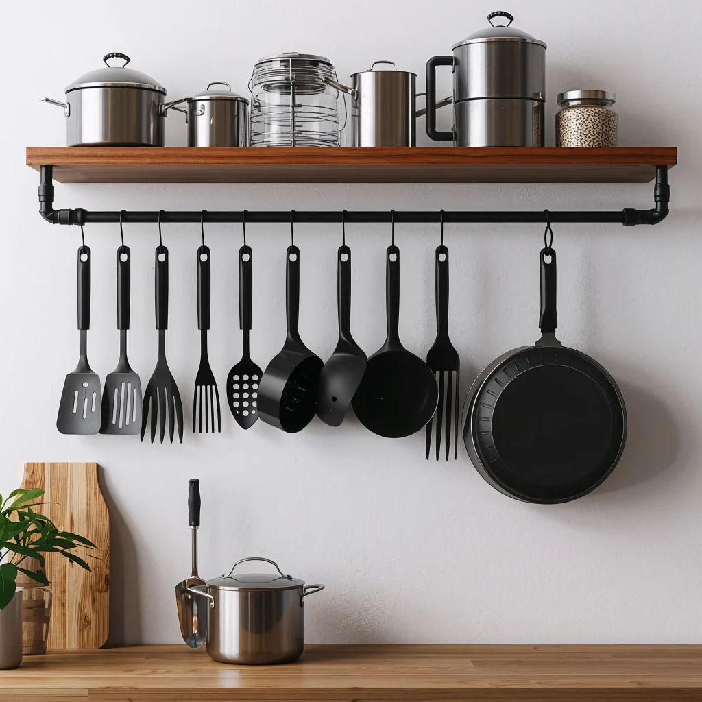 Who says storage can’t be stylish? My industrial pipe rack serves double duty as both decor and the most-used organizational tool in my kitchen. It holds everything from copper pots to my collection of mismatched mugs.