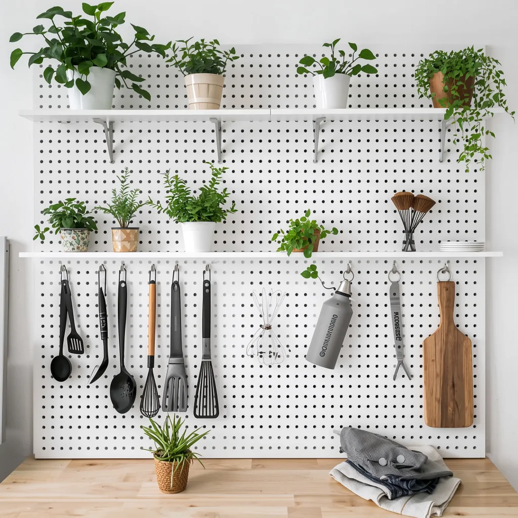 Start with a thick pegboard (at least ¼ inch) that can handle weight. Mount it with spacers behind it so your pegs can actually go through the holes – rookie mistake I made the first time.