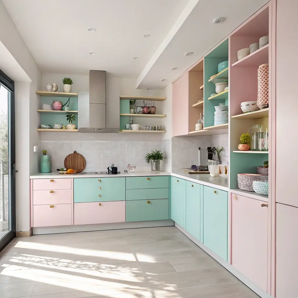 Sometimes the best solution is no cabinet at all. Open corner shelving turns dead space into a design feature while keeping everything accessible. Plus, it forces you to keep things organized (or at least Instagram-worthy).