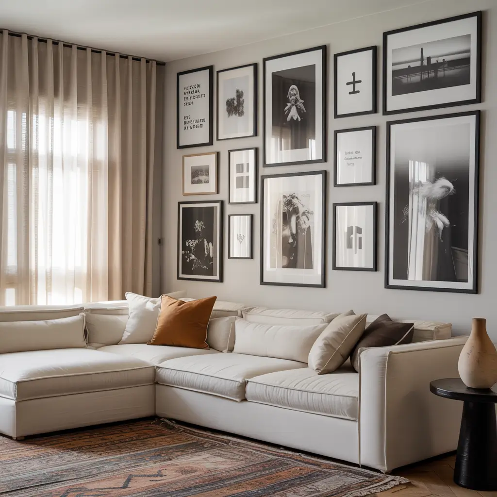 Here’s my foolproof method: cut paper templates of your frames and tape them to the wall first. Move them around until you love it. This saves you from the dreaded “wall full of holes” disaster. Trust me, I learned this the hard way :/