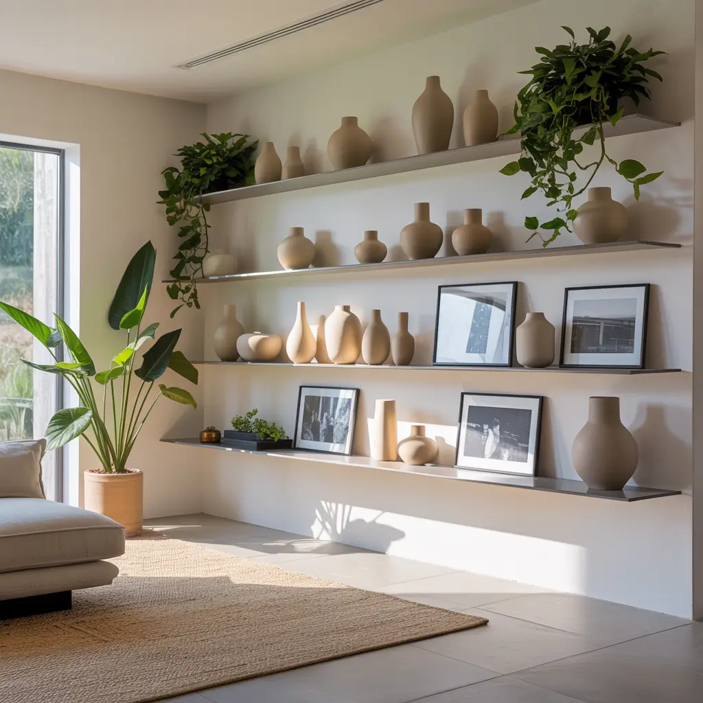 Who says storage can’t be gorgeous? Wall-mounted floating shelves give you the best of both worlds – a place to display your treasures and a design element that commands attention. I installed floor-to-ceiling shelves last year, and suddenly my book collection became art.