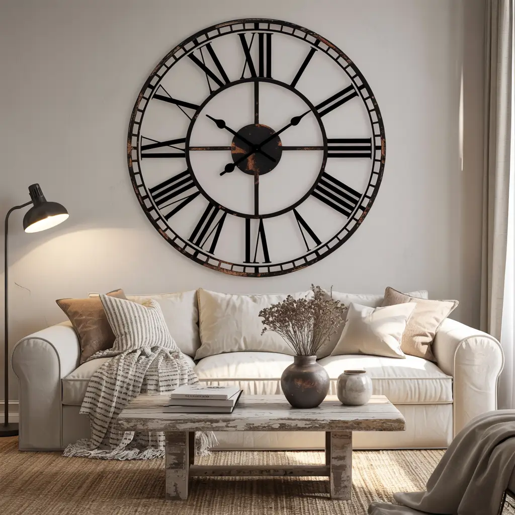 Who says clocks are just functional? An oversized clock turns time-telling into a design statement. My 4-foot diameter clock doesn’t just tell time – it anchors my entire living room design.