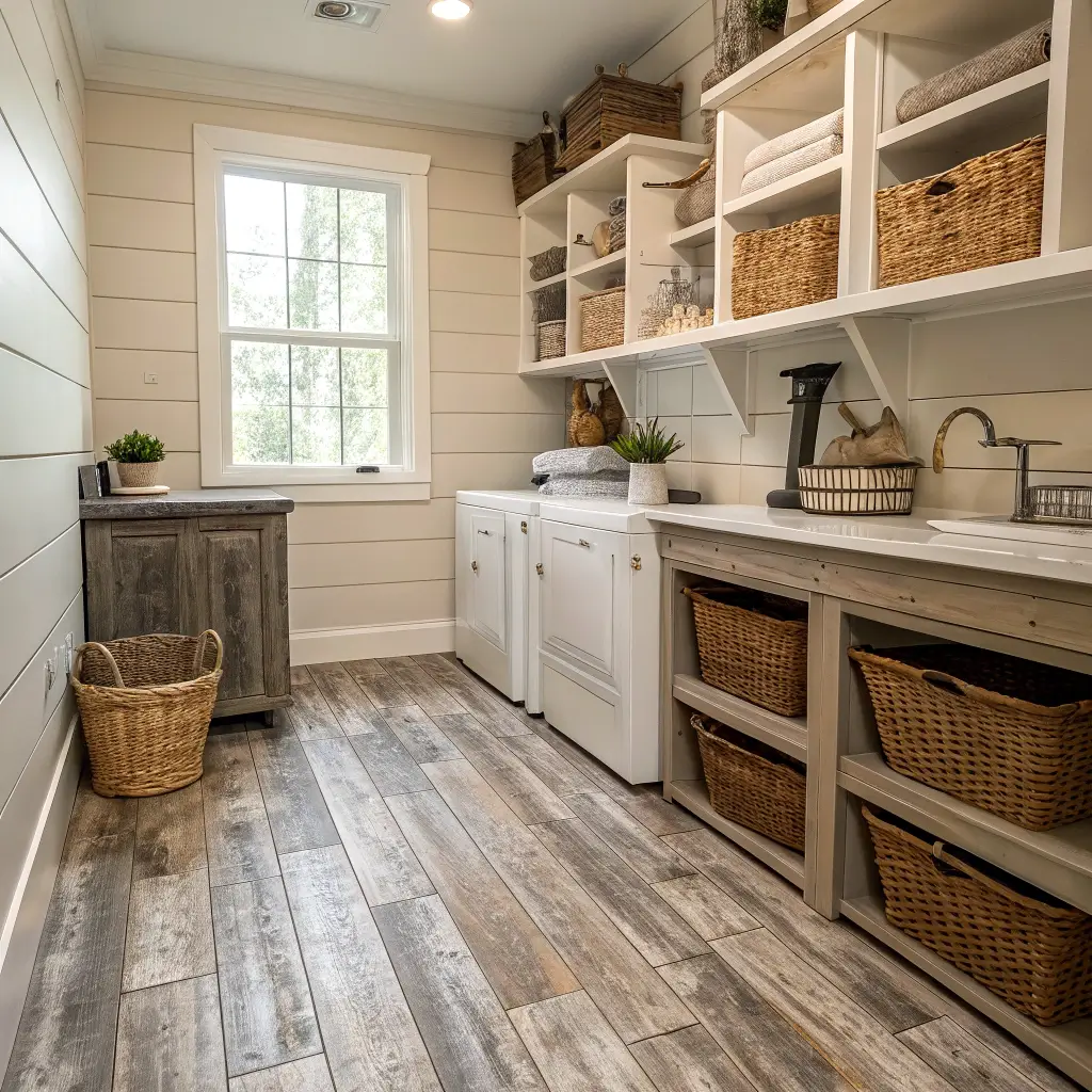 Rustic Wood-Look Flooring for Laundry Spaces