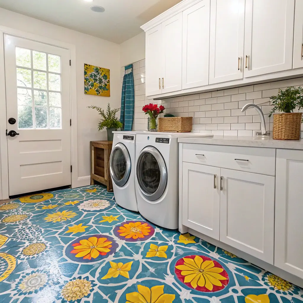 Bright and Colorful Laundry Room Floor Ideas
