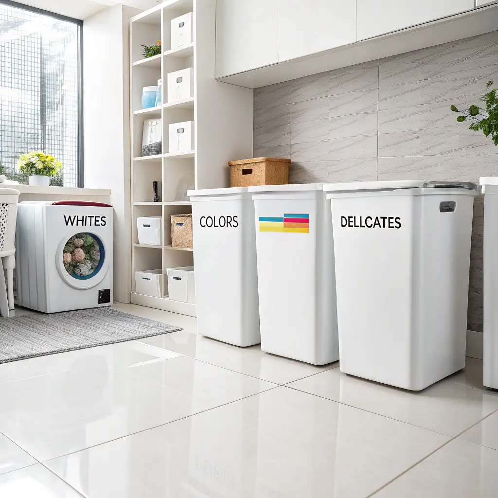 Listen, I used to be a “throw everything in one basket” person until I turned a white shirt pink one too many times. Now? Color-coded sorting bins have revolutionized my laundry game.