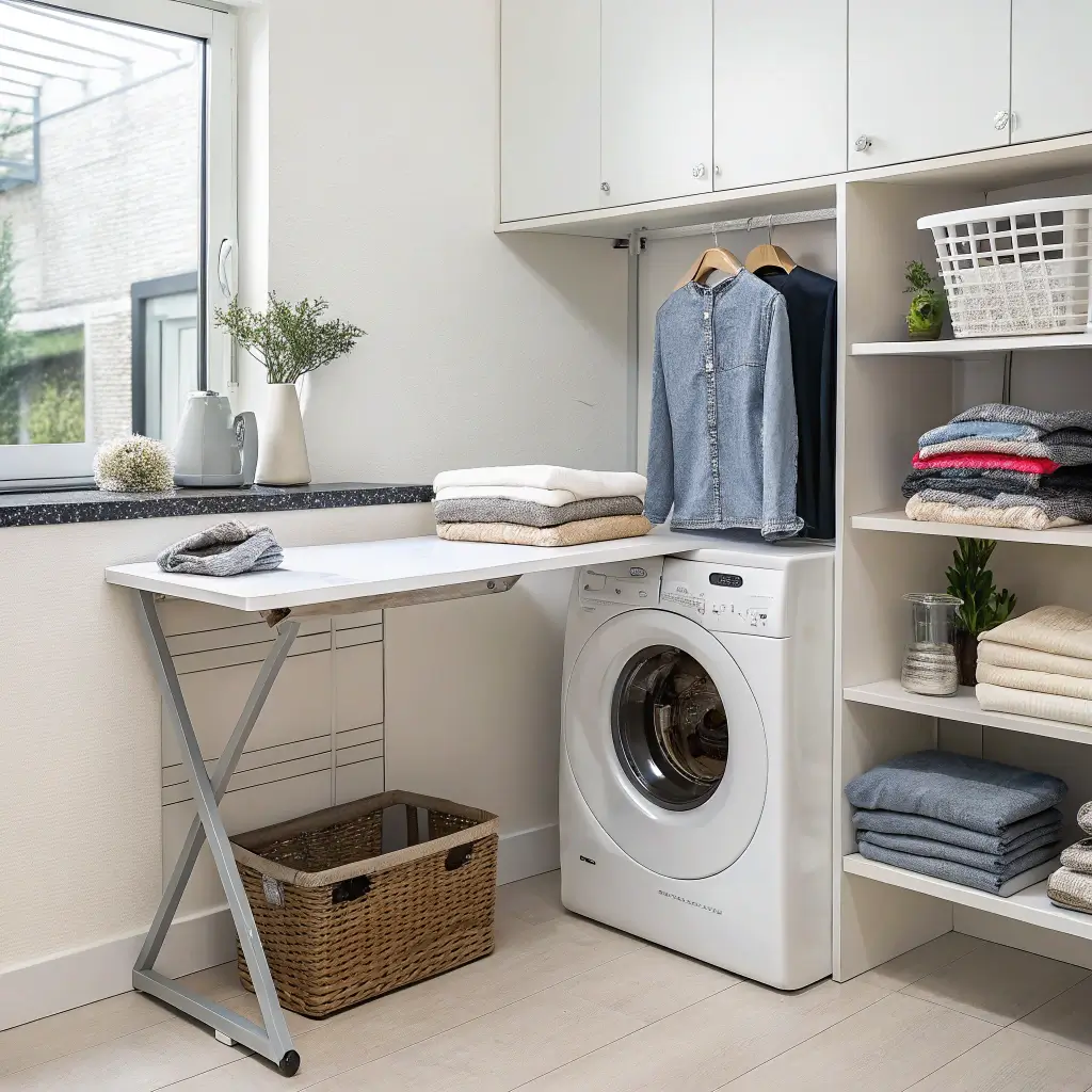 I installed mine on the wall beside my dryer, and it folds completely flat when not in use. We’re talking maybe 2 inches of depth. When I need it, it swings down in seconds. No more wrestling with a rickety board in the hallway or setting up shop on the dining table.