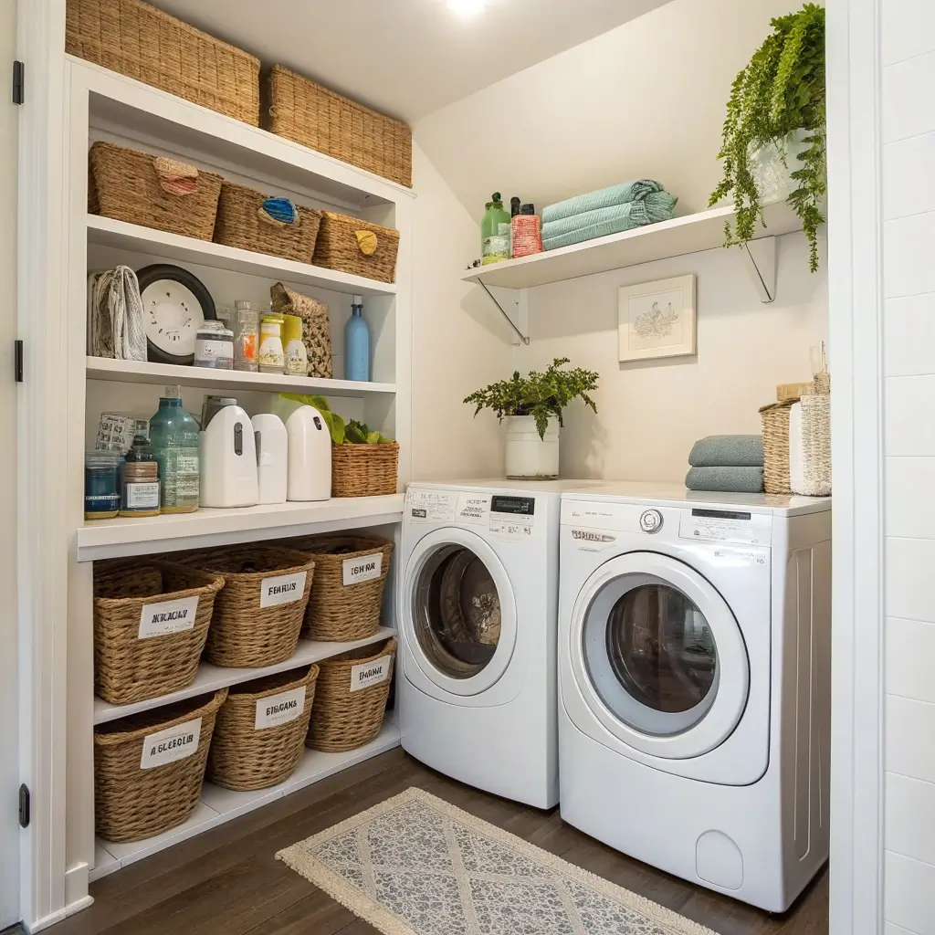 Here’s the thing about organizing a small laundry room – you don’t need to implement all fifteen ideas at once. Start with one or two that solve your biggest pain points. Constantly losing detergent? Floating shelves. No folding space? Fold-down table. Can’t sort clothes? Color-coded bins.