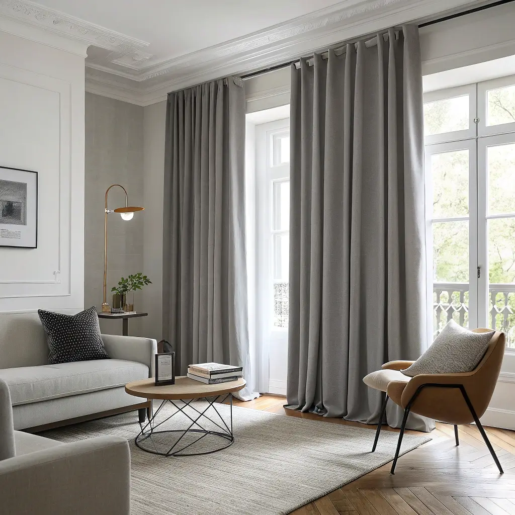 Now we’re talking drama – the good kind, not the “why did you like her photo at 2 AM” kind. Floor-to-ceiling grey linen drapes are having a serious moment right now, and I’m absolutely here for it.