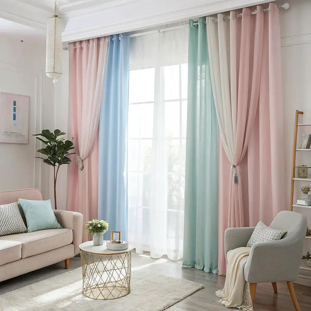 Who says pastels are just for nurseries? Modern pastel curtains bring softness and sophistication to adult spaces when done right. We’re talking dusty rose, sage green, and powder blue – not Easter egg explosion.