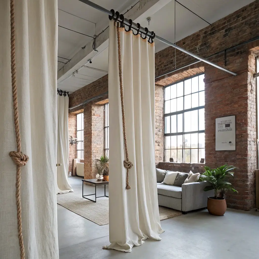 Here’s where things get interesting. Industrial-style curtains with rope details bring that coveted warehouse-loft aesthetic to any space. Even if your “loft” is actually a suburban split-level. We won’t tell.
