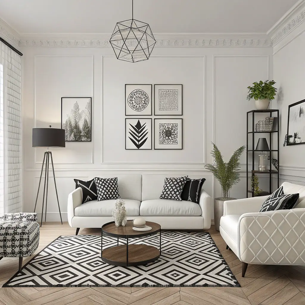 Black and white living rooms deliver drama without color commitment. This high-contrast approach creates sophisticated spaces that photograph beautifully (hello, Instagram!).
