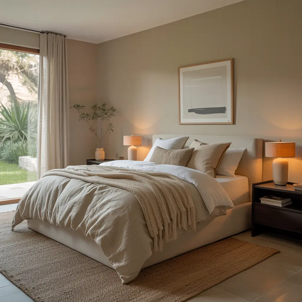 Want to know my secret weapon? I always add a touch of warm white to break up the beiges. Think white lampshades, picture frames, or even just white sheets peeking out from under a tan duvet. This contrast prevents your room from looking flat or boring.