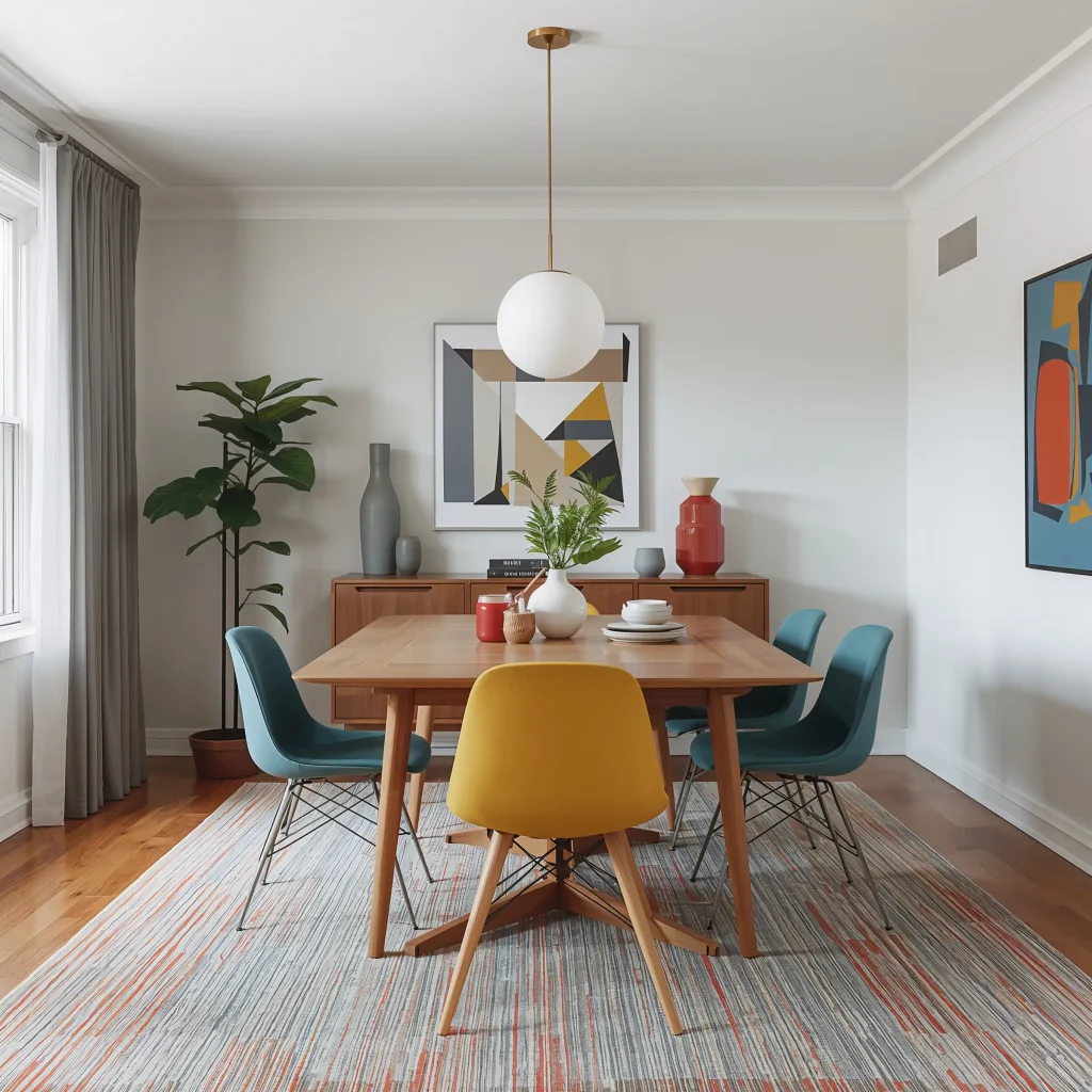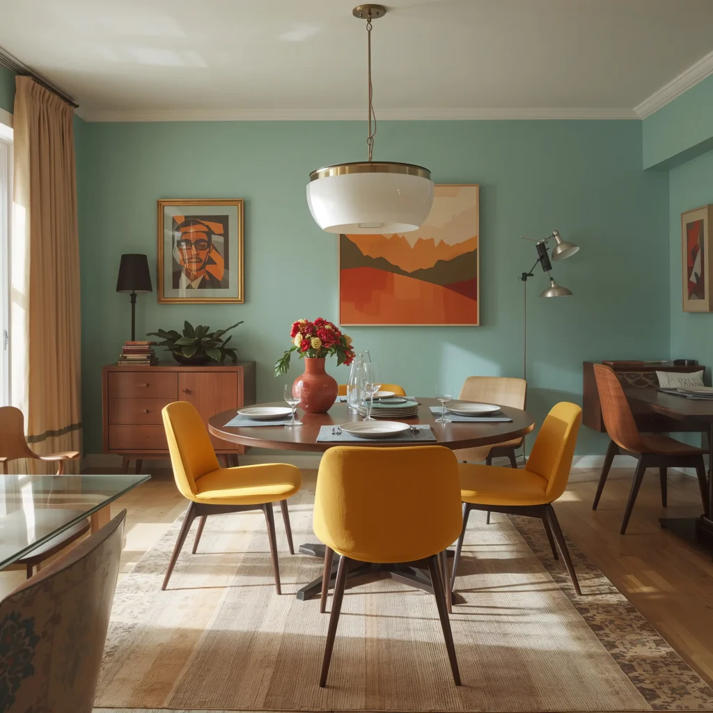 Bold Accent Colors in Mid-Century Dining