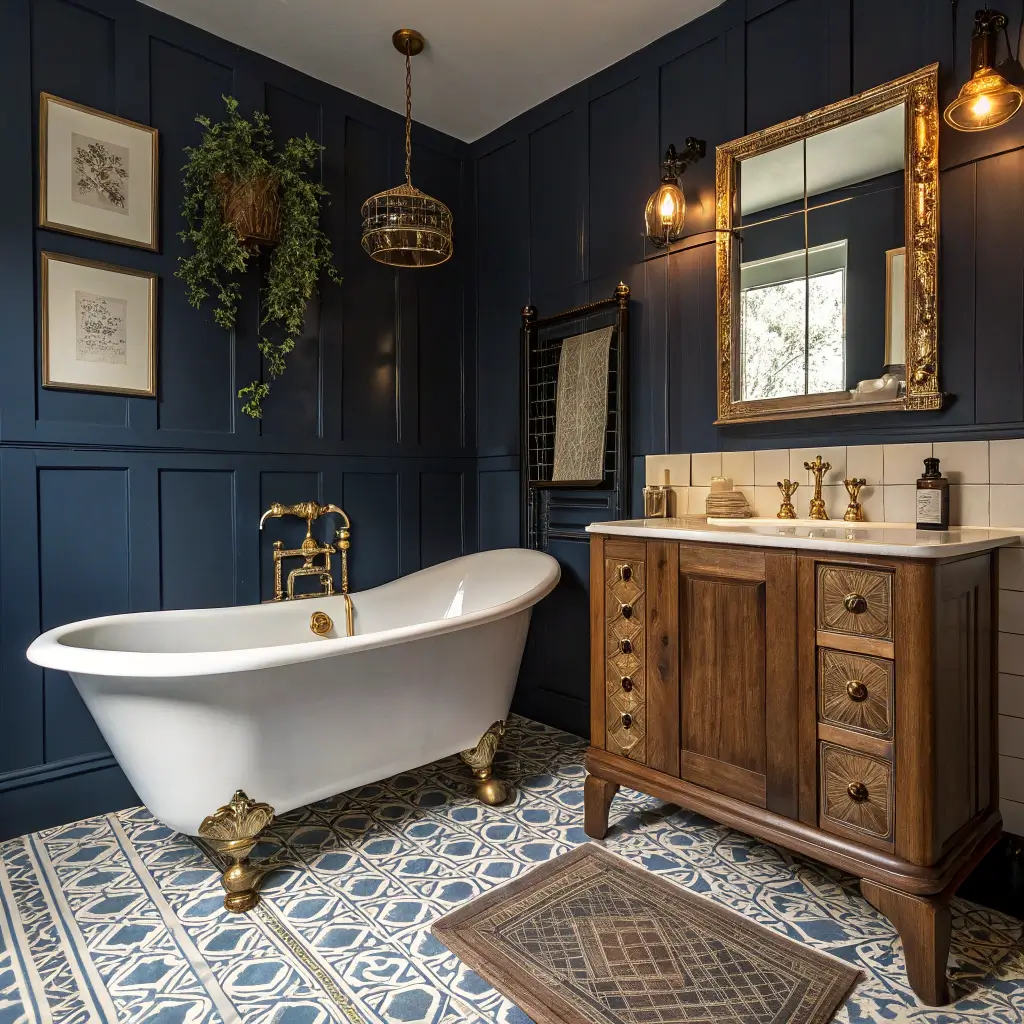 There’s something wonderfully romantic about a dark blue vintage charm bathroom. This style celebrates the craftsmanship and character of bygone eras while keeping the modern conveniences we’ve grown to expect (like, you know, decent water pressure).