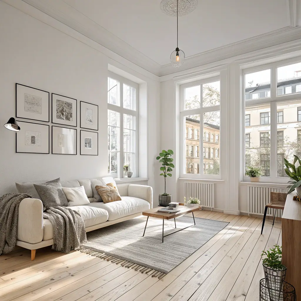 Start with your biggest furniture pieces and keep them low to the ground. Scandinavian design loves that horizontal emphasis – it makes your ceiling feel higher and your room more spacious. Paint everything white (yes, even that accent wall you’re emotionally attached to), then add warmth through natural materials.