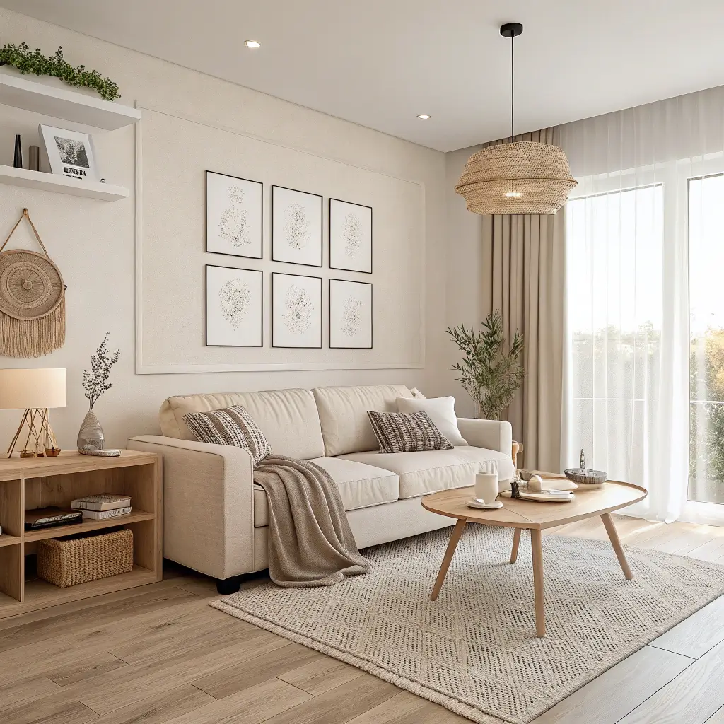 Low furniture keeps everything grounded. A low table, floor cushions, maybe a platform sofa. Your living room becomes a sanctuary, not just a room with a TV.