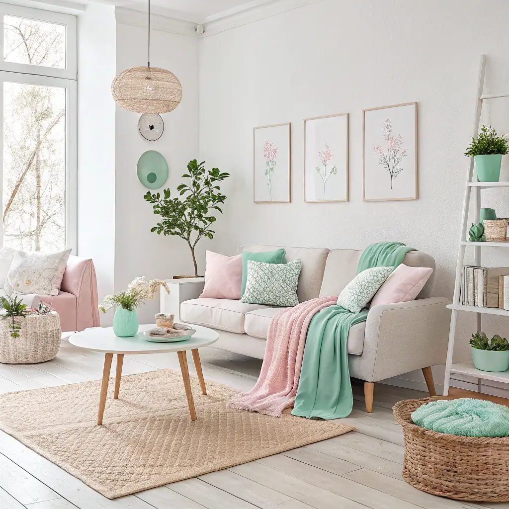 Plot twist: minimalism doesn’t ban all color. Soft pastels can work if you handle them like expensive perfume – a tiny bit goes far.