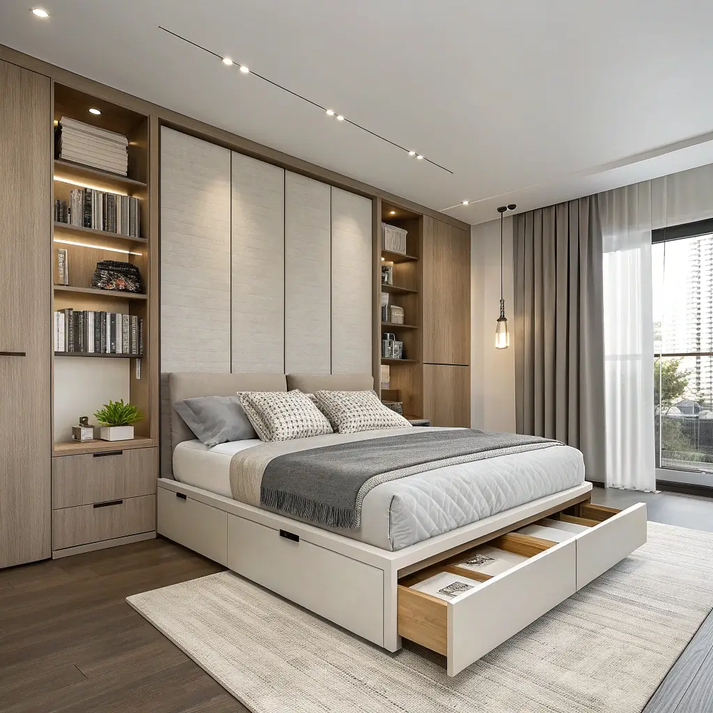 | Minimalist/Japandi | Built-ins, hidden compartments, under-bed storage |