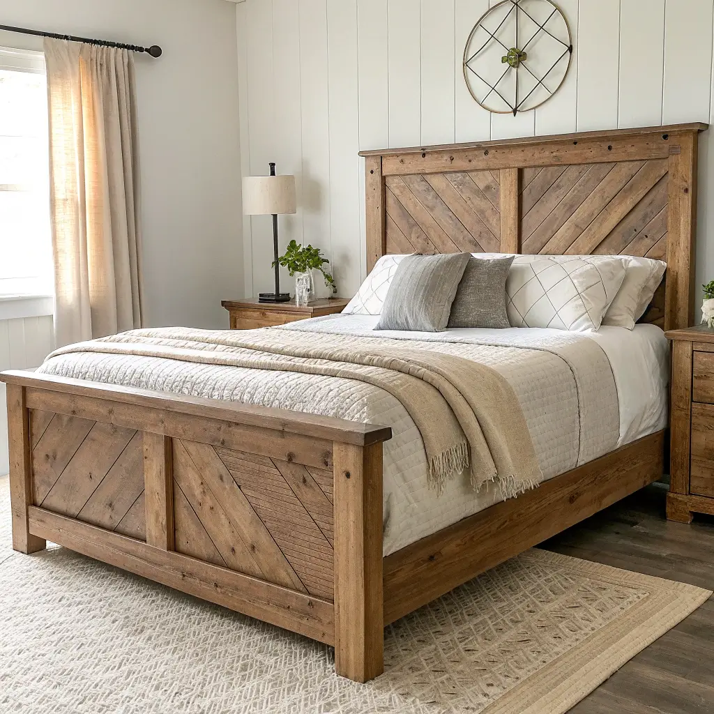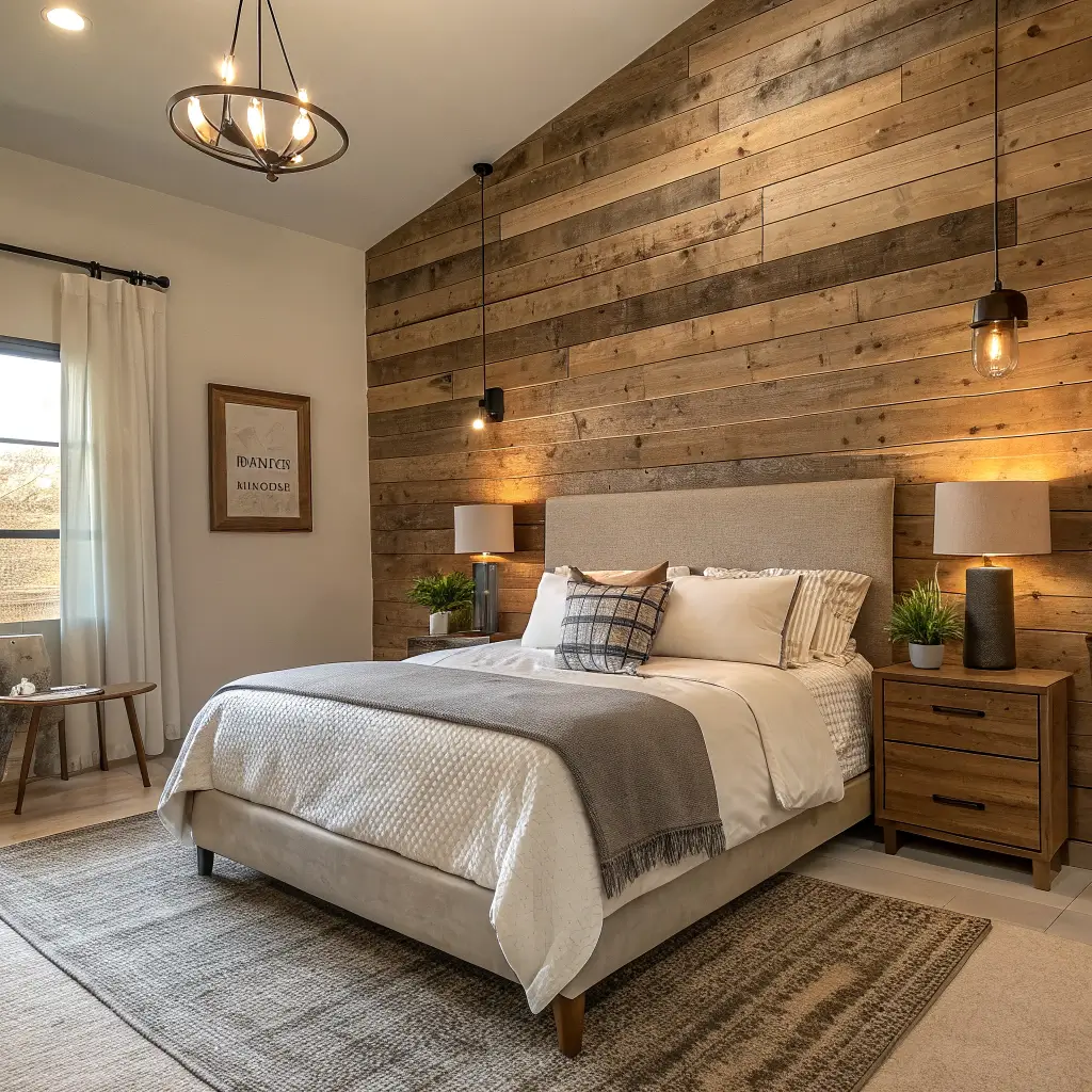 Nothing says farmhouse quite like reclaimed wood, right? An accent wall instantly becomes the focal point of your bedroom and adds that authentic rustic character we all crave.