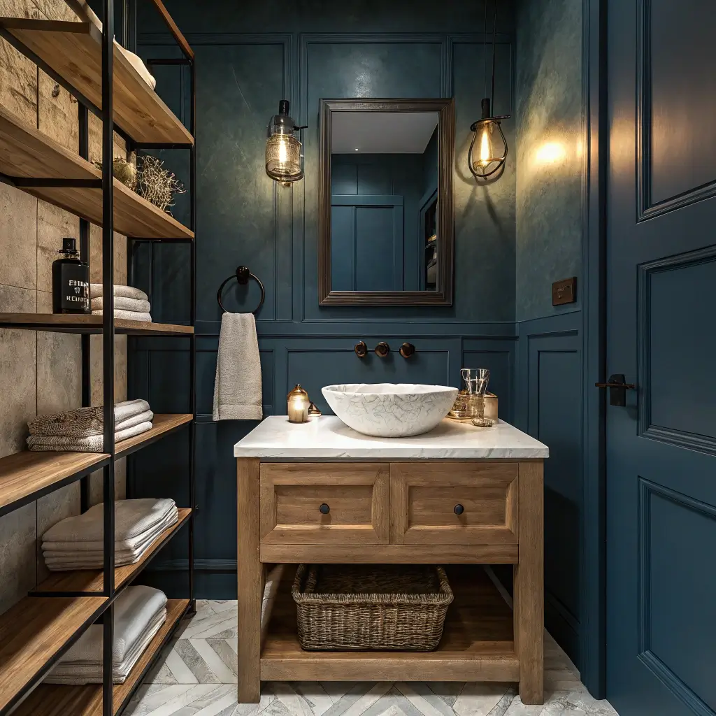 The deep blue provides all the drama you need. By keeping accessories minimal, you let the color be the star while maintaining that clean, spa-like feel we’re after. My guest bathroom follows this principle, and it’s surprisingly the most complimented room in my house.