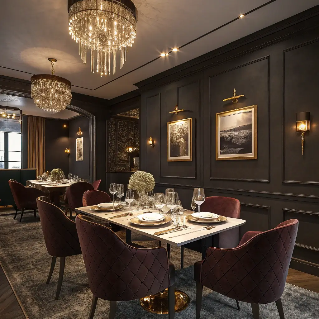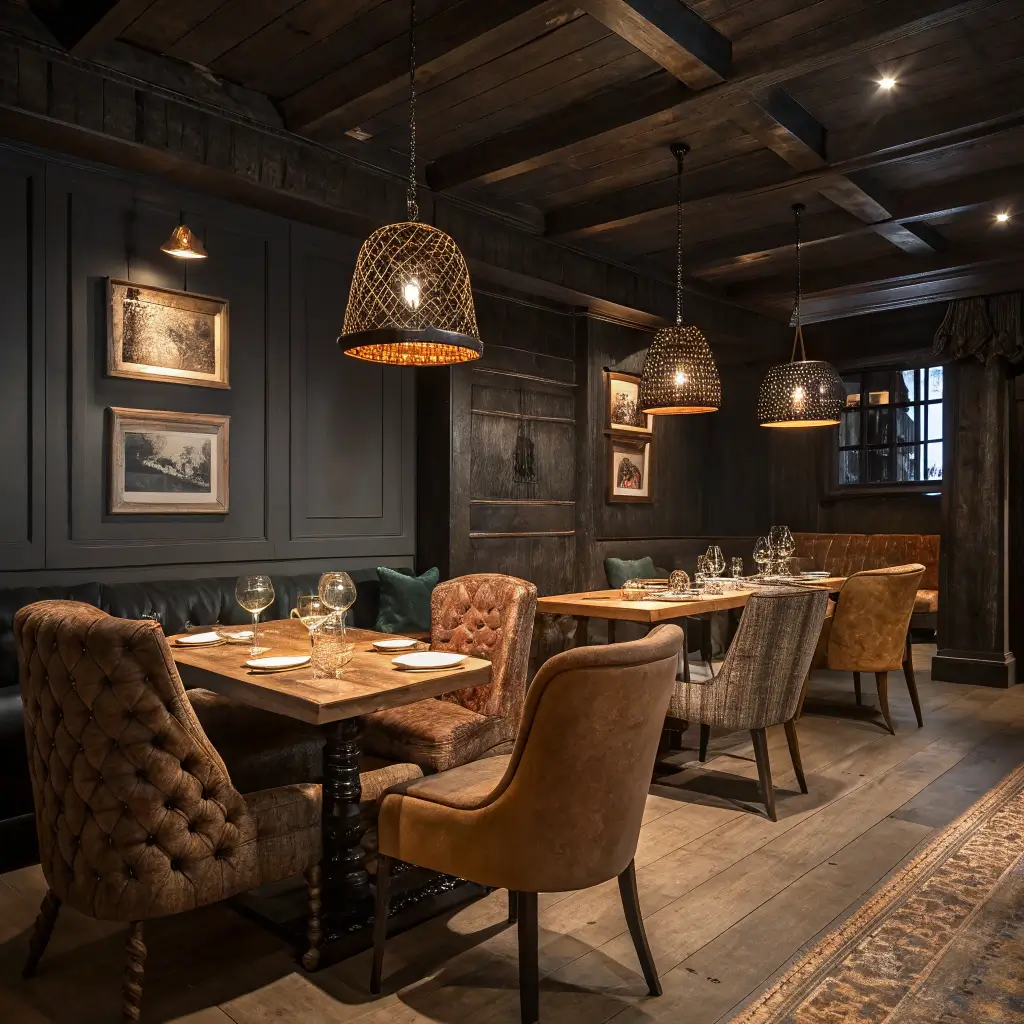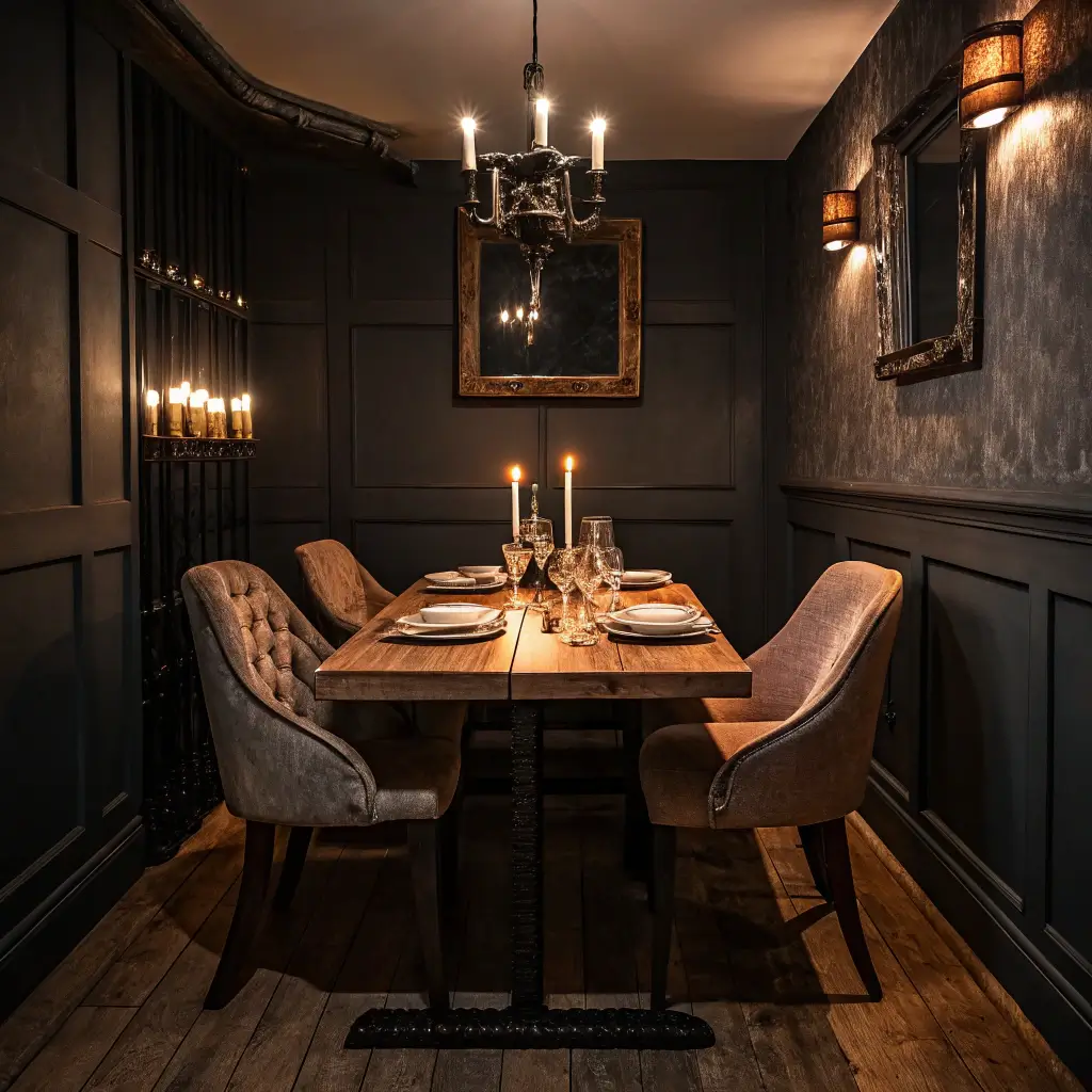 Picture this: charcoal walls, a simple black dining table, streamlined chairs, and maybe one perfect pendant light. That’s it. The beauty is in the simplicity and the quality of each element. Every piece needs to earn its place.