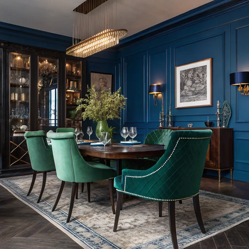 Remember when everyone was afraid of color? Thank goodness we’re over that. Deep jewel tones – think emerald, sapphire, amethyst – create the kind of dining room that makes people stop mid-bite and just look around in awe.