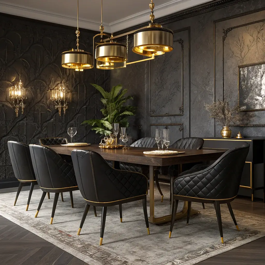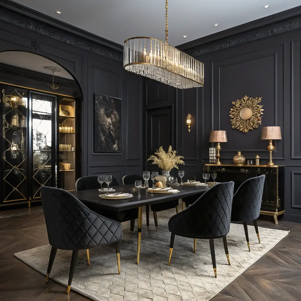 Okay, this combination might seem obvious, but hear me out – when done right, black and gold creates the kind of dining room that makes you feel like royalty. And no, I’m not talking about tacky Vegas vibes. Think sophisticated, restrained luxury.