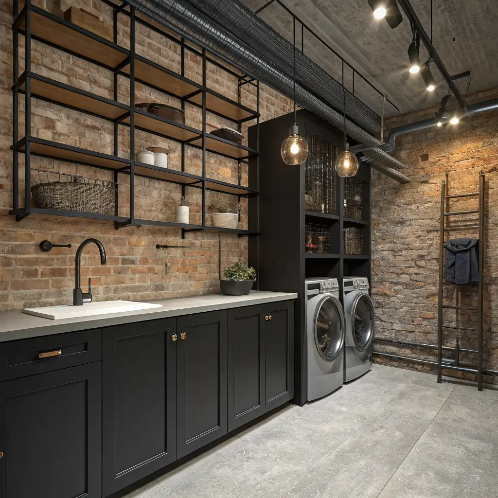 I helped my brother design his industrial laundry space, and we went all in – black pipe shelving, Edison bulb lighting, and walls painted in Farrow & Ball’s Railings (fancy, I know, but worth every penny). We kept the original brick wall and just sealed it. Now everyone asks if we hired a designer. Nope, just embraced the bones of the space.
