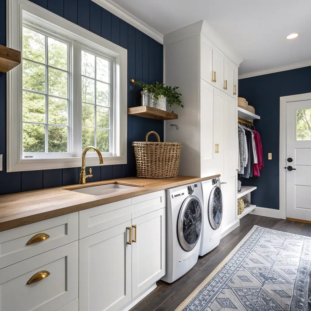 Navy blue hits different in a laundry room. It’s moody without being too aggressive, sophisticated without trying too hard. I call it the “gateway drug” to dark laundry rooms – perfect for commitment-phobes who aren’t ready for full-on black.