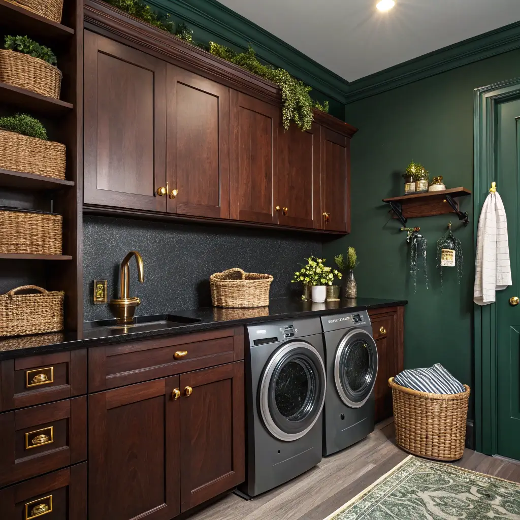 Dark Green Moody Laundry Room