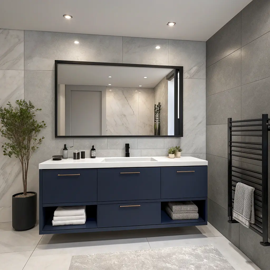 Ready to make a statement? Let’s talk about going bold with your navy vanity. This isn’t for the faint of heart, but wow, does it pay off.