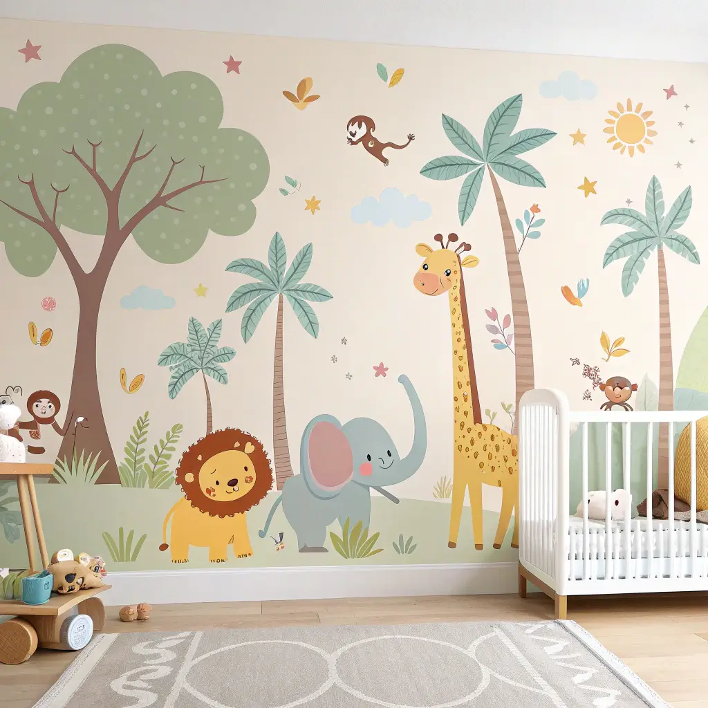 Got a tiny nursery? Don’t write off murals just yet! I learned this trick from a mom in my playgroup: create a focal wall behind the crib instead of covering everything. One accent wall with a beautiful safari scene draws the eye without overwhelming the space.