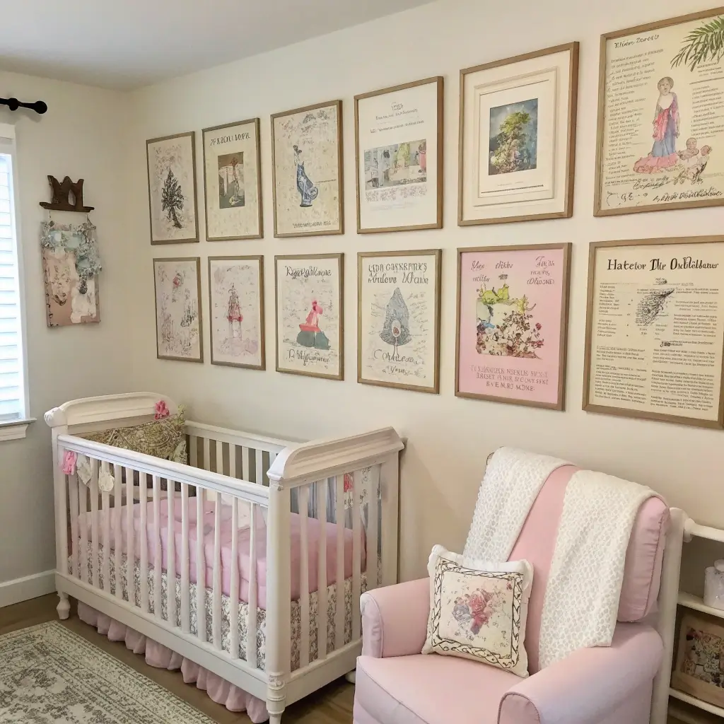 Here’s where my book-nerd heart really shines. Creating a collage from vintage storybook pages brings instant warmth and nostalgia to any nursery. Those beautiful old illustrations have this timeless quality that modern prints just can’t match.