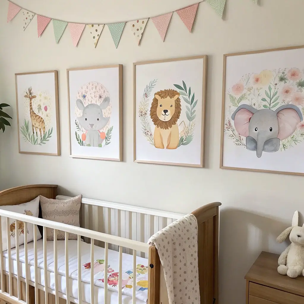 Forget those cartoon animals everywhere. Soft watercolor animal portraits bring sophistication to nursery walls while still appealing to little ones. The flowing colors and gentle brushstrokes create this dreamy quality that fits perfectly in a calm nursery.