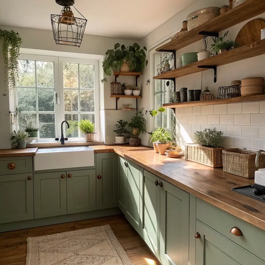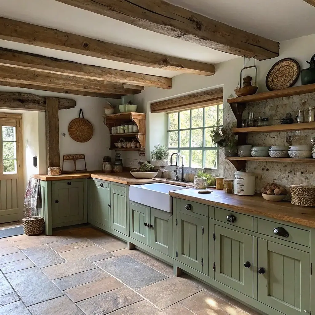 Rustic Olive Green Farmhouse Kitchen