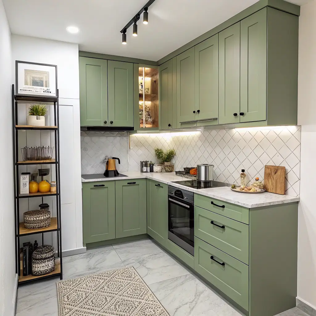 Elegant Olive Green L-Shaped Kitchen Design