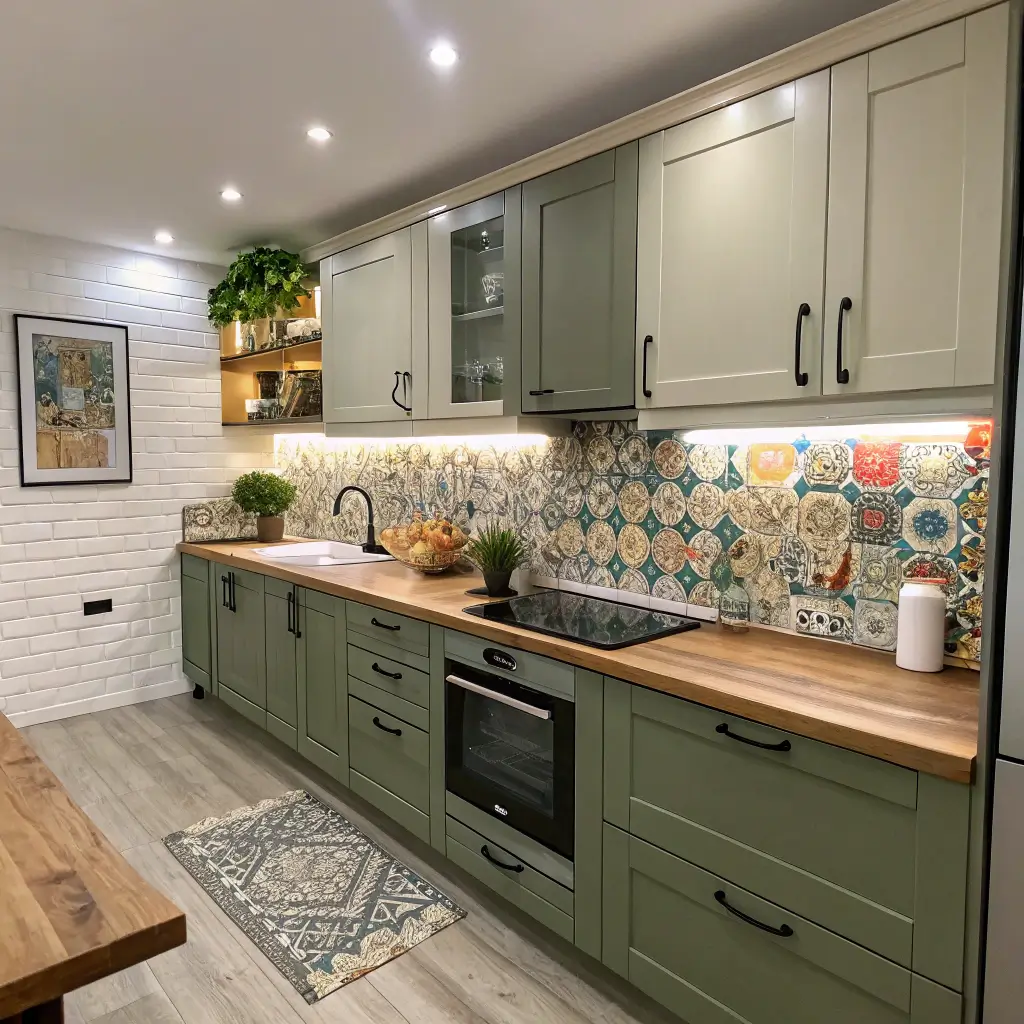 Who says olive green has to play it safe? Pairing it with a colorful backsplash is like giving your kitchen a personality transplant. Suddenly, that sophisticated olive becomes the perfect backdrop for something unexpected.