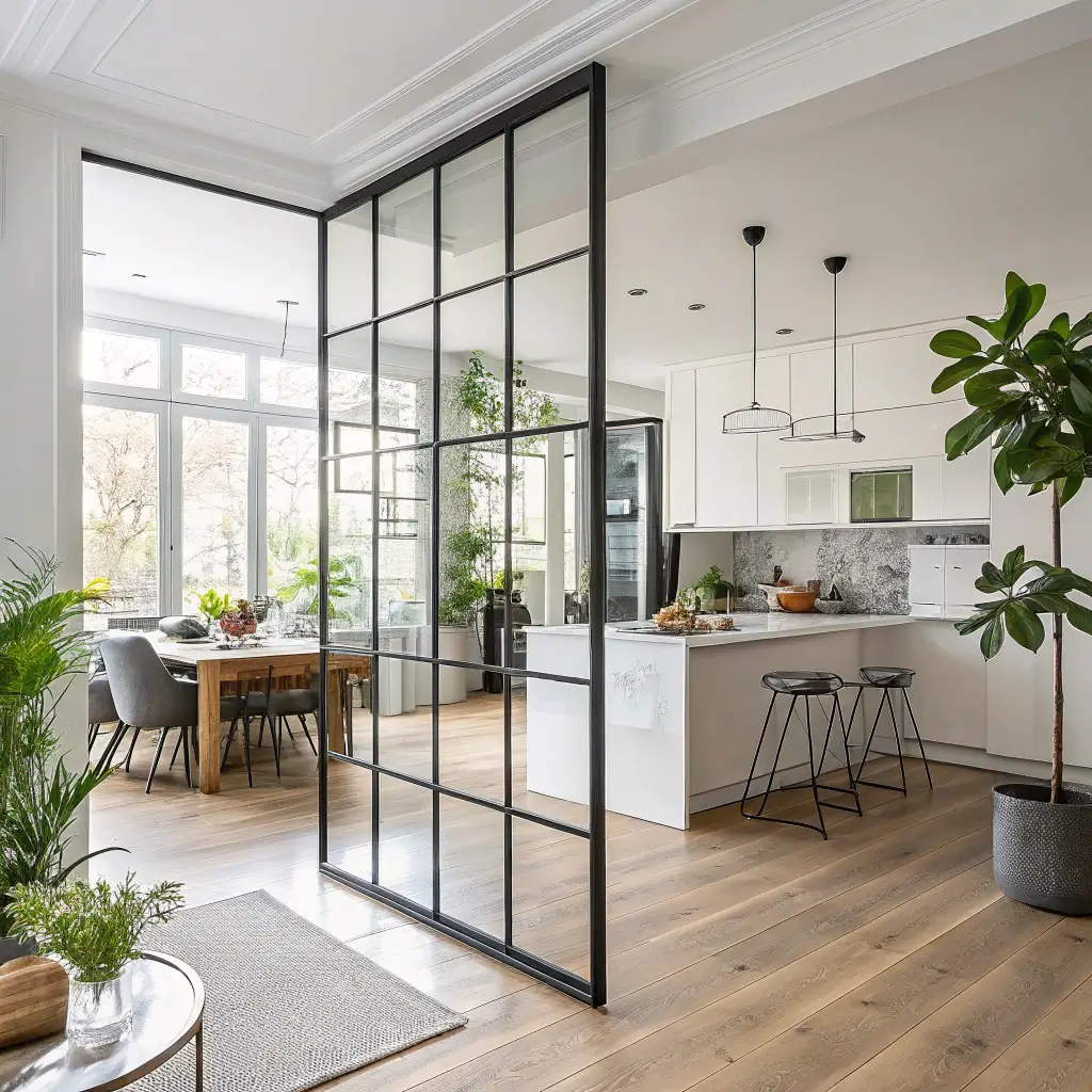 Here’s the thing about glass partitions—they solve your problems without creating new ones. You get physical separation between your cooking chaos and living space while maintaining that visual connection you originally wanted. Light flows through freely, your space still feels massive, and you can actually contain those cooking odors.