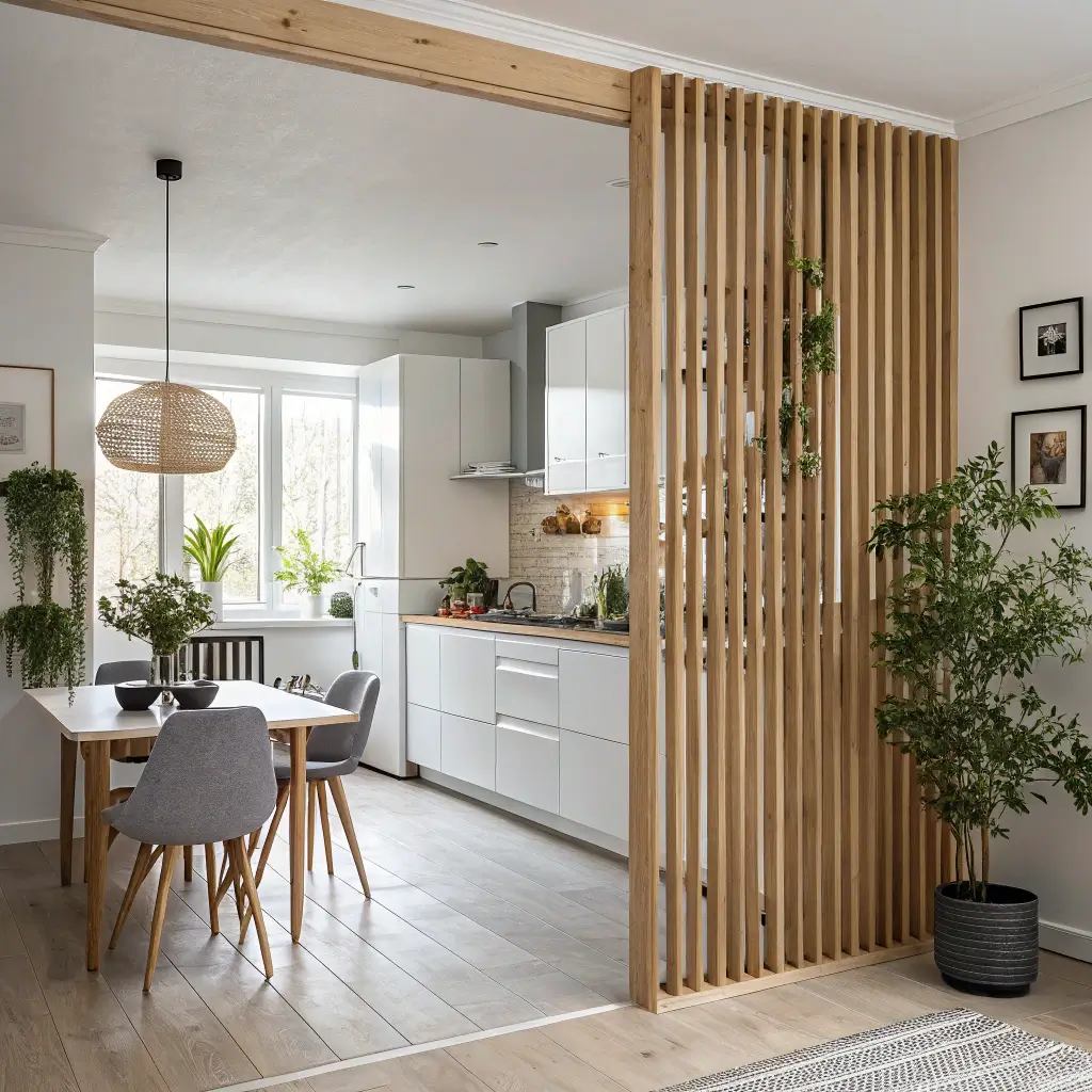 Okay, wooden slat dividers are having a major moment right now, and I’m completely here for it. These vertical or horizontal slat arrangements create rhythm and texture that flat walls simply can’t match.