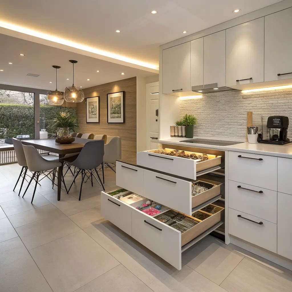 My own kitchen island has deep drawers that hold everything from slow cookers to that pasta maker I used exactly twice. Out of sight, out of mind, and my open plan space looks like it belongs in a magazine rather than a storage unit.