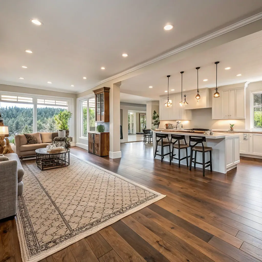 Continuous flooring creates visual flow and makes spaces feel larger. When your eye doesn’t hit a jarring transition between kitchen tile and living room hardwood, the entire area reads as one cohesive space.