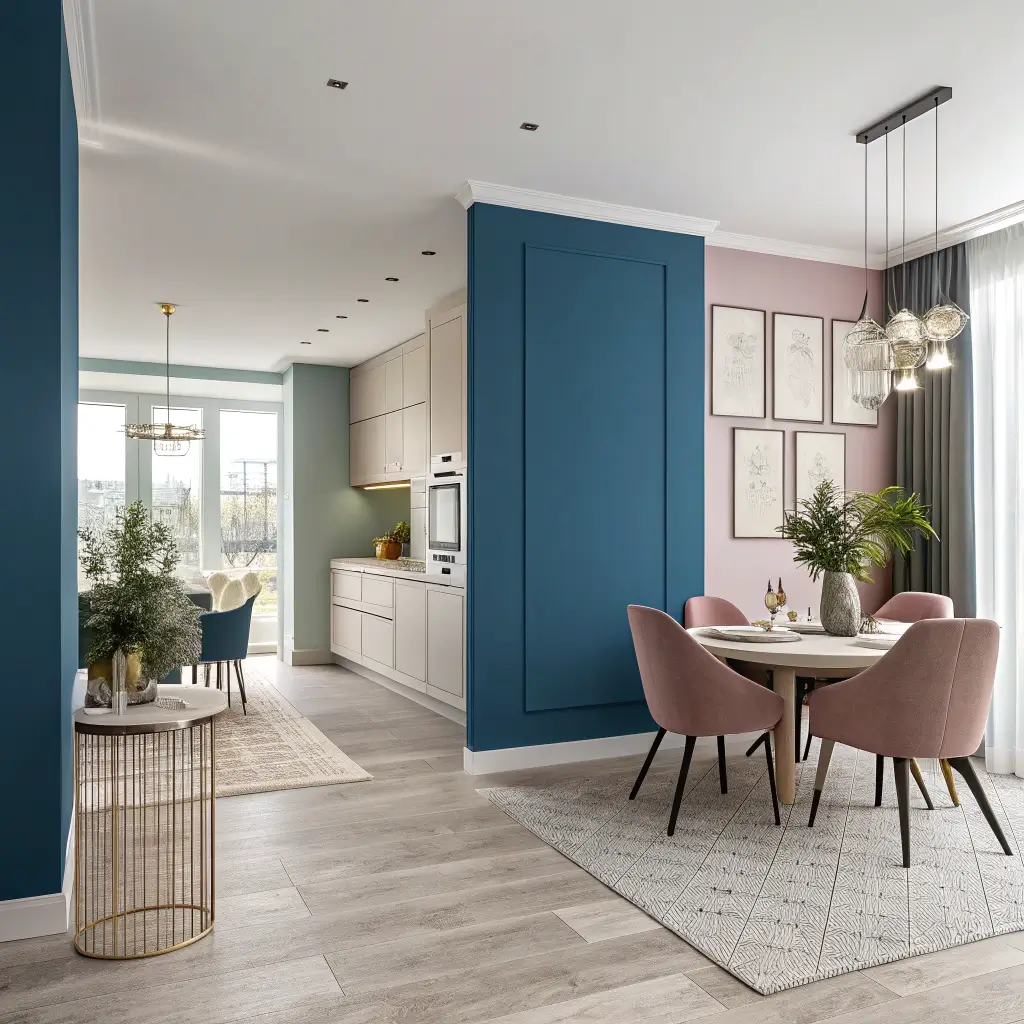 Paint is cheap, and its impact is massive. Imagine your kitchen zone in a deep forest green, transitioning to warm white in the dining area, with a rich terracotta accent wall behind your sofa. Each color tells your brain, “This is a different space,” without ever breaking the open floor plan.