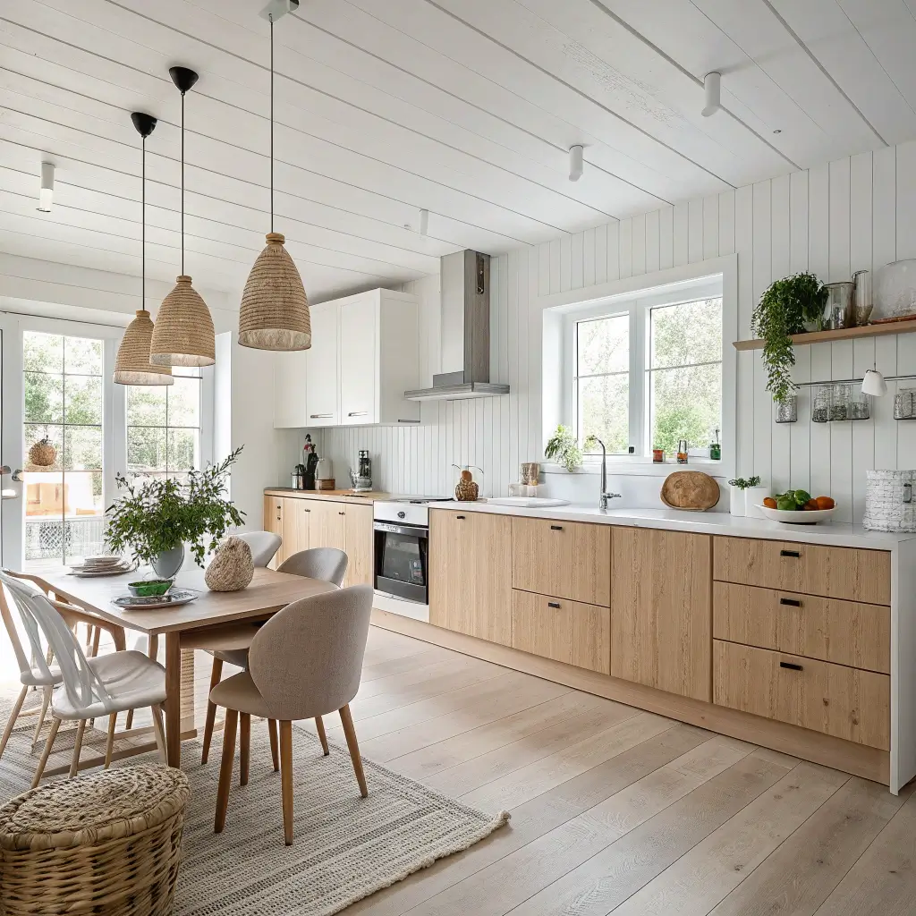 Scandinavian Style Open Plan Kitchen with Light Wood