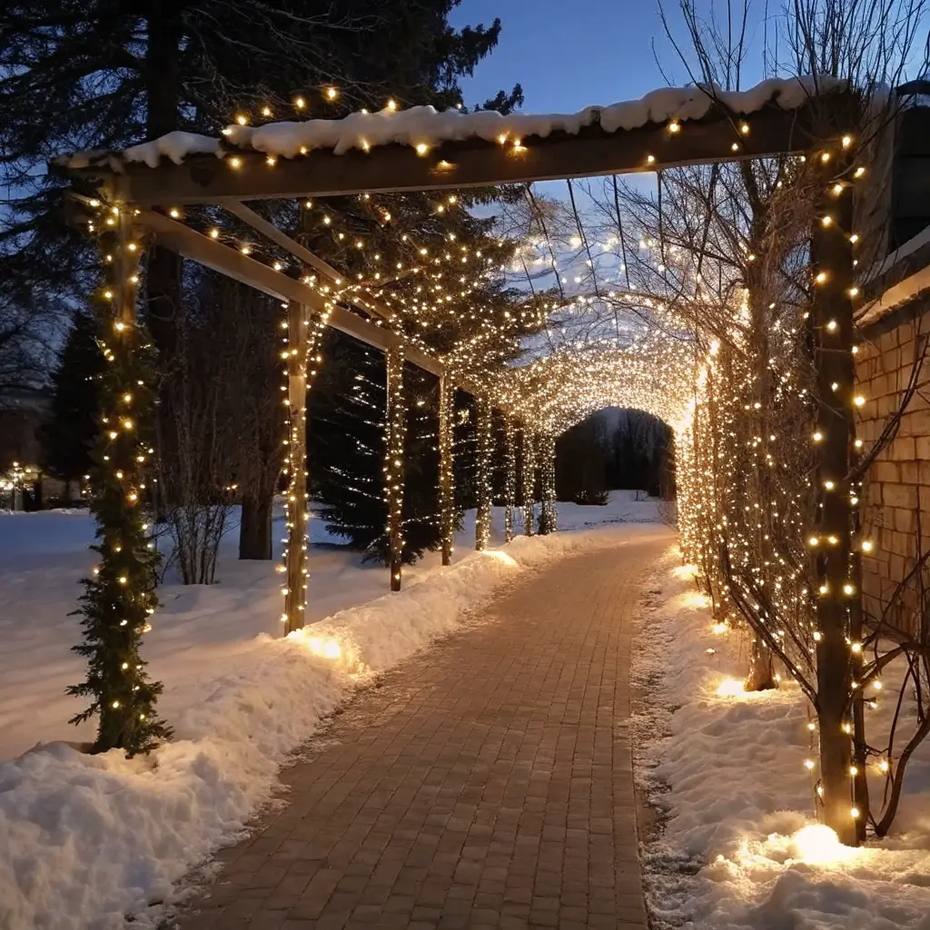 Pro tip? Wind your lights around bare tree branches along the path if you have them. Nature does half the decorating work for you, and it looks absolutely magical when it snows.
