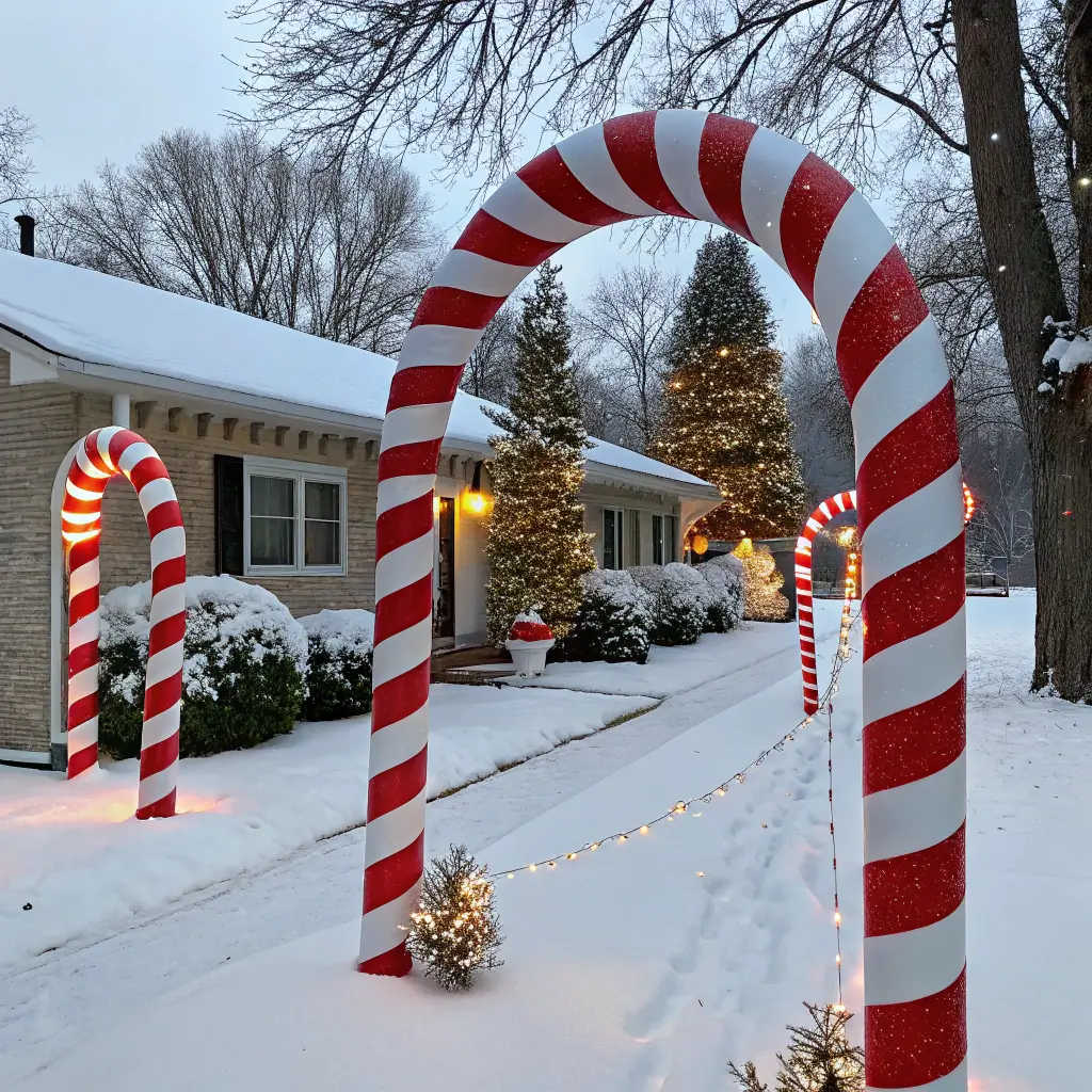 Remember being a kid and thinking those massive candy canes were the coolest thing ever? Well, guess what – they still are! Creating giant candy cane pillars at your entrance makes everyone feel like they’re walking into Santa’s workshop.