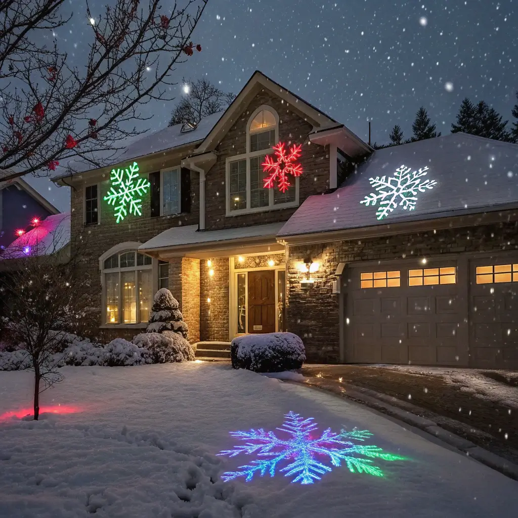 Okay, this one’s for my tech-savvy decorators out there. LED snowflake projectors have completely changed the outdoor Christmas game. No ladders, no tangled lights, no frostbite – just plug in and watch your house transform into a winter palace.