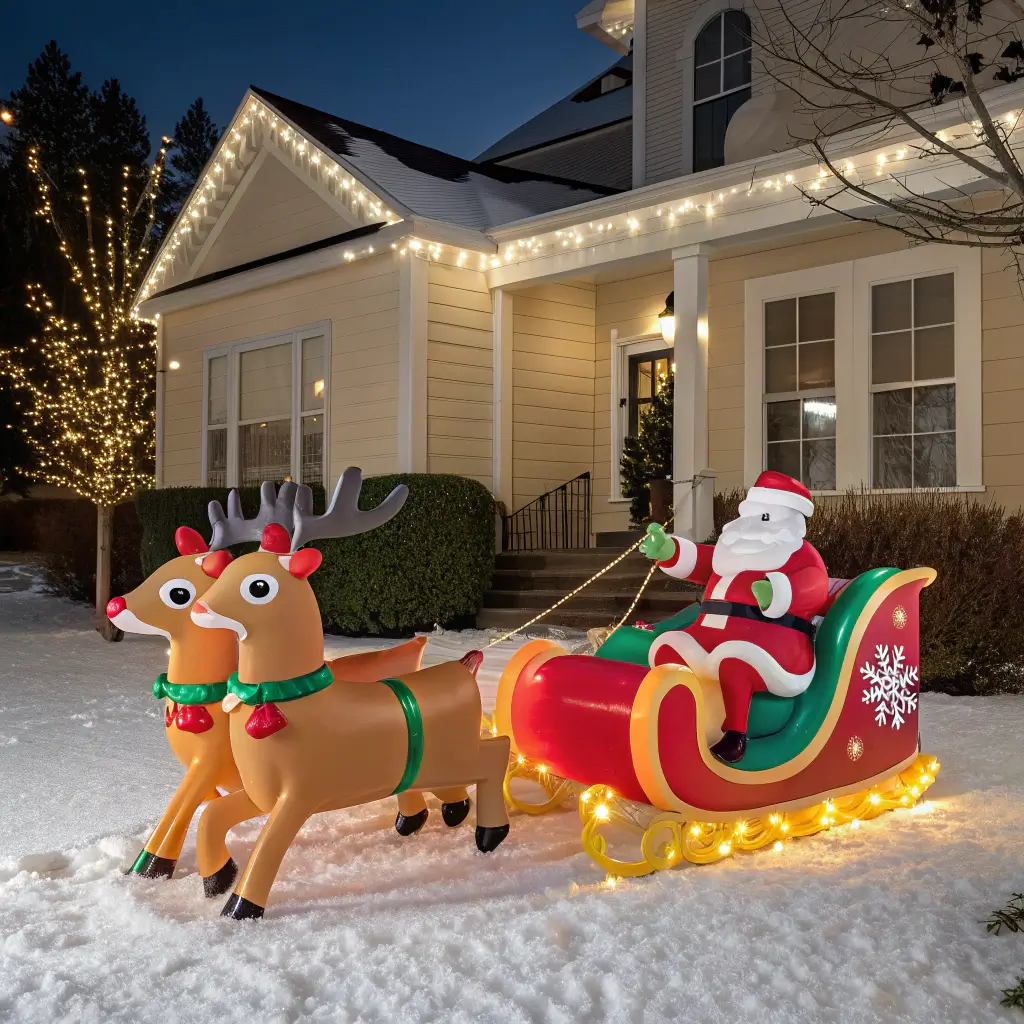Look, I know inflatables get a bad rap sometimes. People think they’re tacky or lazy. But hear me out – a well-placed inflatable Santa with his sleigh can be the perfect centerpiece for your display, especially if you’ve got kids.