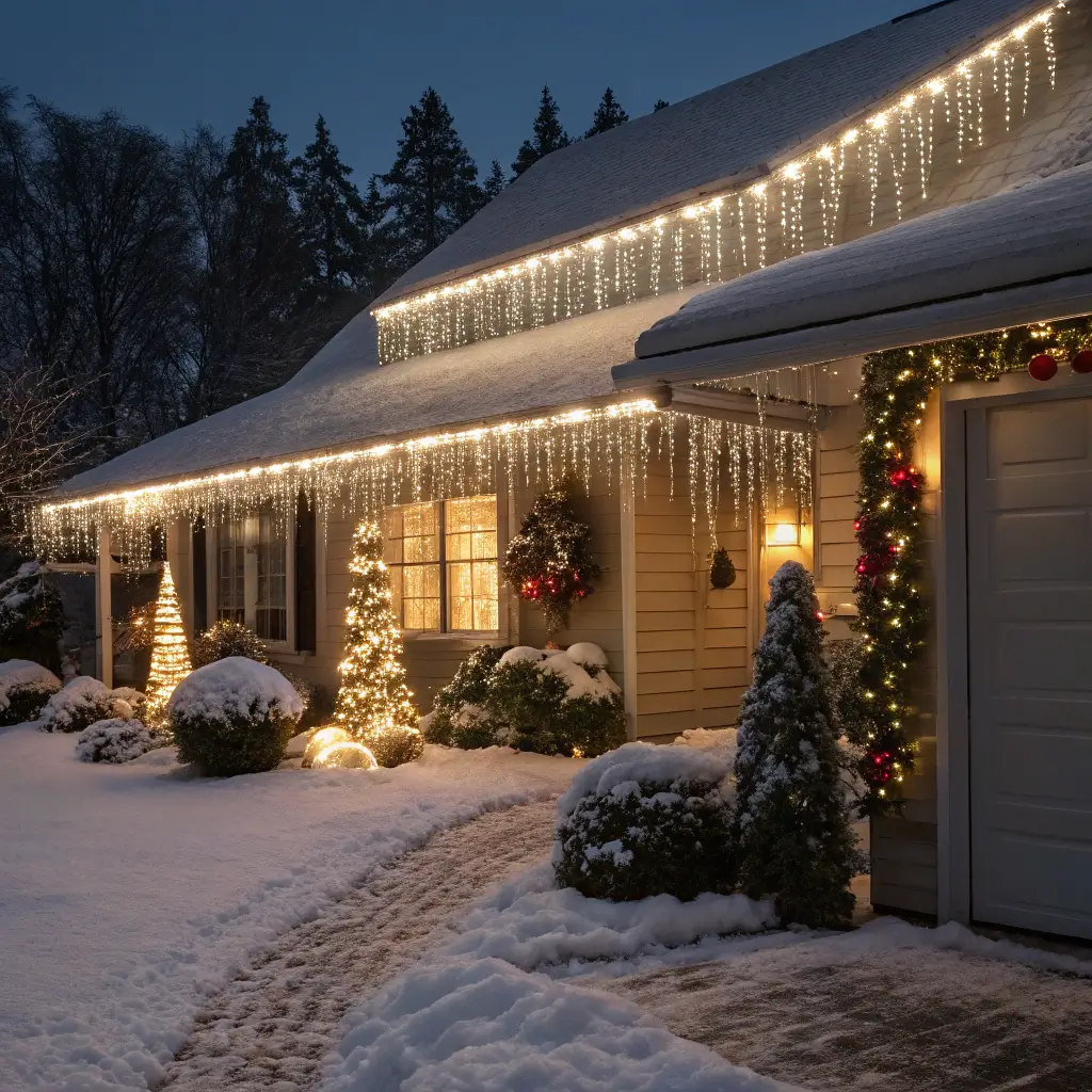 Nothing says “winter wonderland” quite like icicles dripping from your roofline. LED icicle lights create this effect without the actual freezing temperatures or potential roof damage.