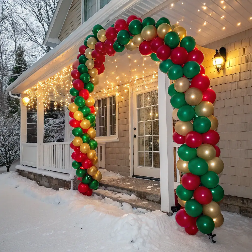 Before you roll your eyes at balloons, hear me out. Outdoor-rated Christmas balloon garlands offer huge visual impact for minimal investment. They’re especially perfect for parties or if you’re decorating last-minute.